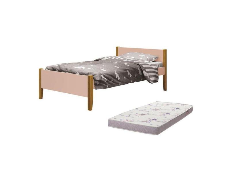 Cama Solteiro Simba Rosa Fosco Pés Amadeirado Com Colchão D20 - Reller Móveis Rosa Fosco