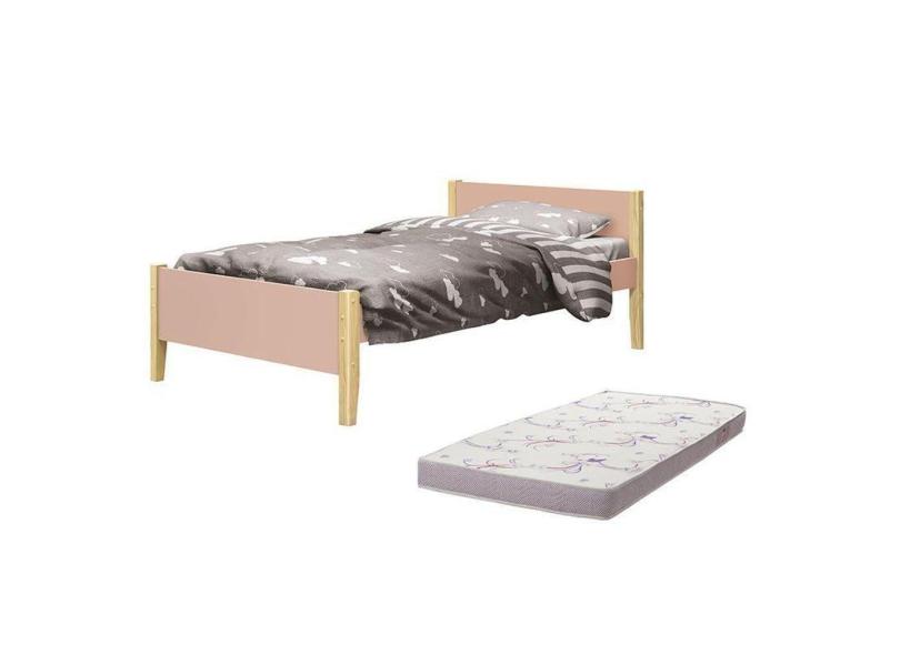 Cama Solteiro Simba Rosa Fosco Pés Madeira Natural Com Colchão D20 - Reller Móveis Rosa Fosco