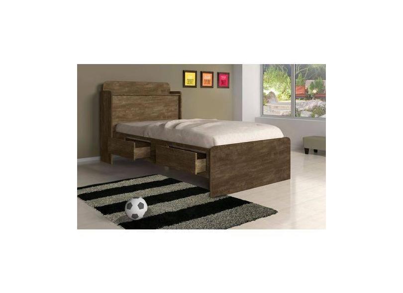 Cama Solteiro Tamires Com Bau Castanho Wood - Cambel Móveis