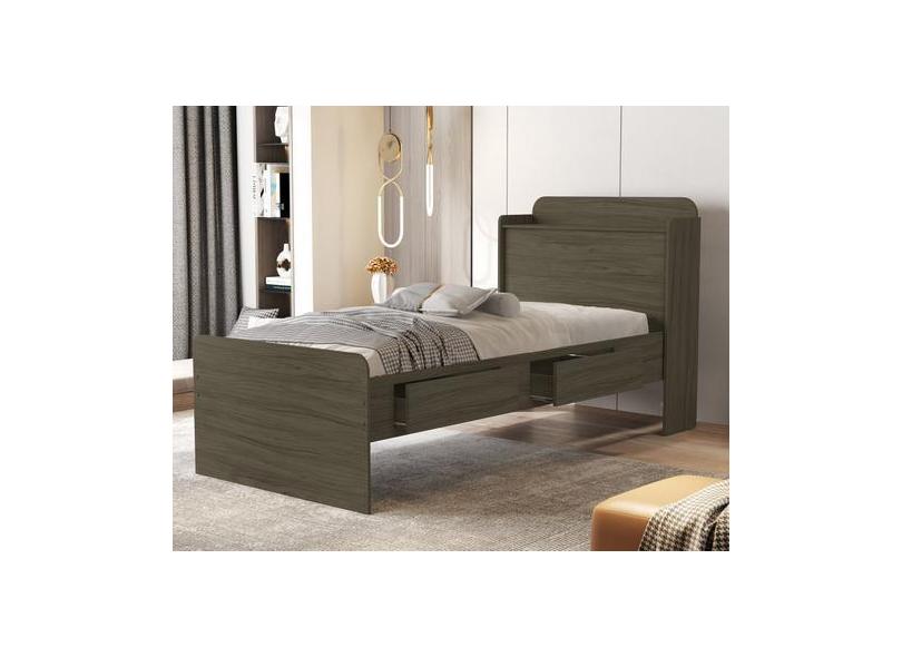 Cama Solteiro Tamires Com Gavetas Prateleira E Bau Para Quarto Moderna