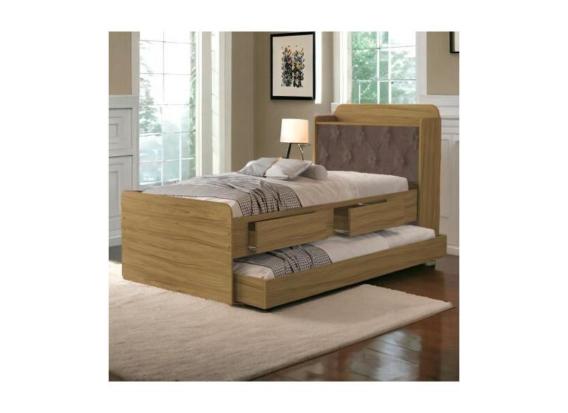 Cama Tamires Baú Freijó com Auxiliar e Capitonê Nogal - VJ Móveis