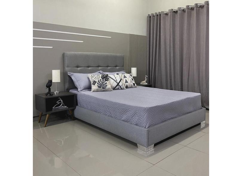 Cama Tradicional Estofada Berlim Linho Cinza rbl Casal 1,40 X 1,90