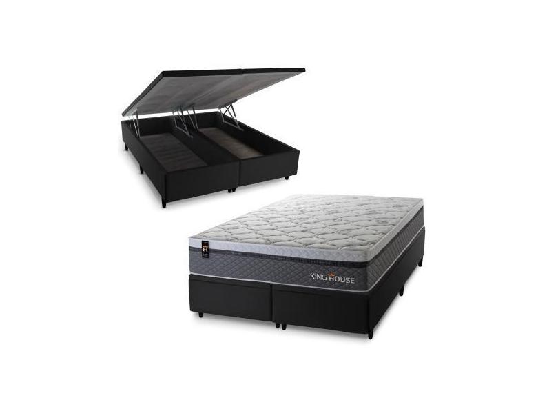 Conjunto Box Baú Benton Cinza 193x203x67 c/ Molas Ensacadas - King Hou