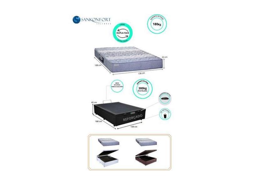 Conjunto Box Baú Casal c/ Colchão Espuma Ortopédico Protege 138x188x64
