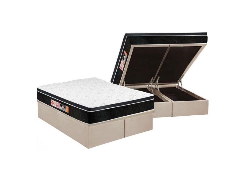 Conjunto Box Baú King: Colchão Espuma Castor D33 Black e White Air Euro Pillow + Base CRC Suede Clean(193x203)
