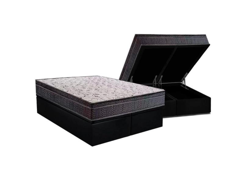 Conjunto Box Baú Queen: Colchão Molas Ortobom D20 Physical Super Hiper Resistente 17 + Base CRC Suede Black (158x198)