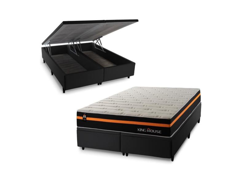 Conjunto Box Baú Sirius Preto 158x198x72 c/ Molas Ensacadas