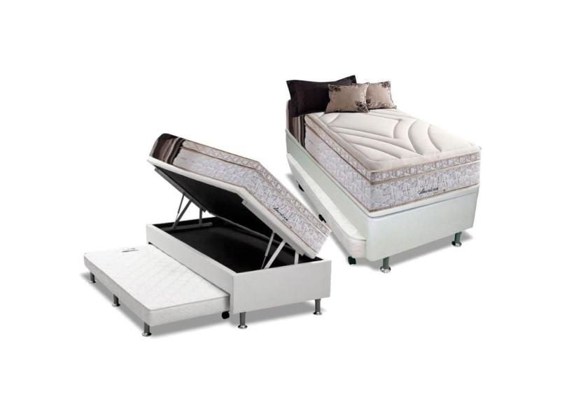 O menor preço encontrado no Brasil para Conjunto Box Baú Solteiro: Colchão Molas Herval Maxspring American + Base CRC Courano Branco (88x188) atualmente é R$ 2.265,69.