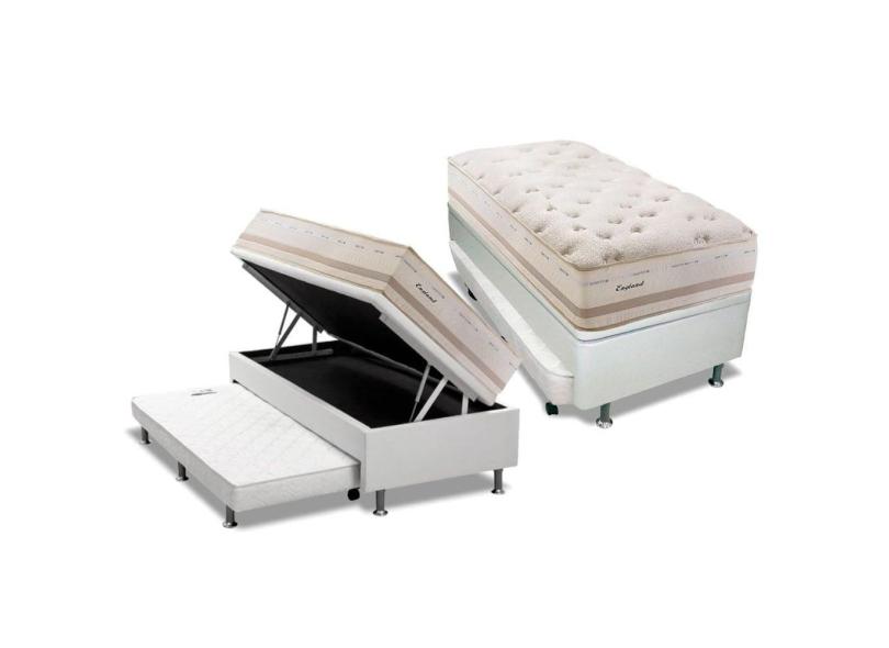 O menor preço encontrado no Brasil para Conjunto Box Baú Solteiro: Colchão Molas Herval Maxspring Scotland + Base CRC Courano Branco (88x188) atualmente é R$ 2.317,44.