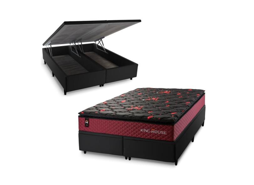 Conjunto Box Baú Toronto Preto 193x203x73 c/ Molas Ensacadas