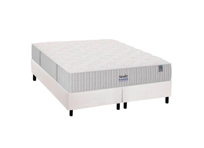 Conjunto Box Queen Colchão Molas Sealy Ensacadas Phoenix + Base Crc Courano White (158x198)