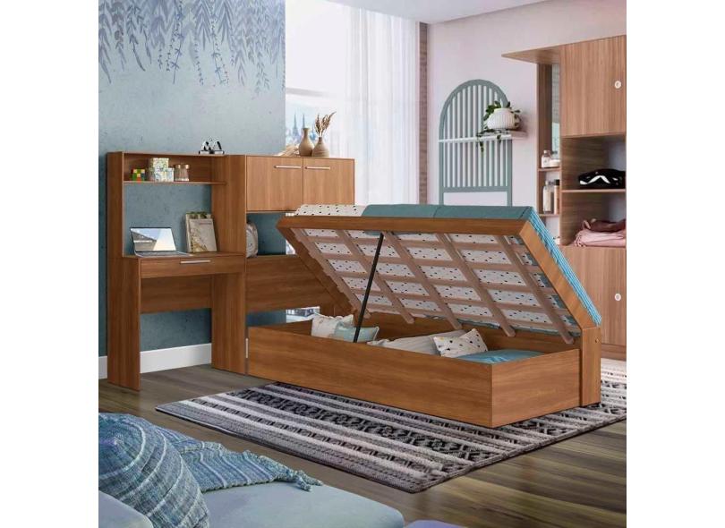 Conjunto Cama Baú Solteiro Com Escrivaninha Nogal Ingrid Shop Jm