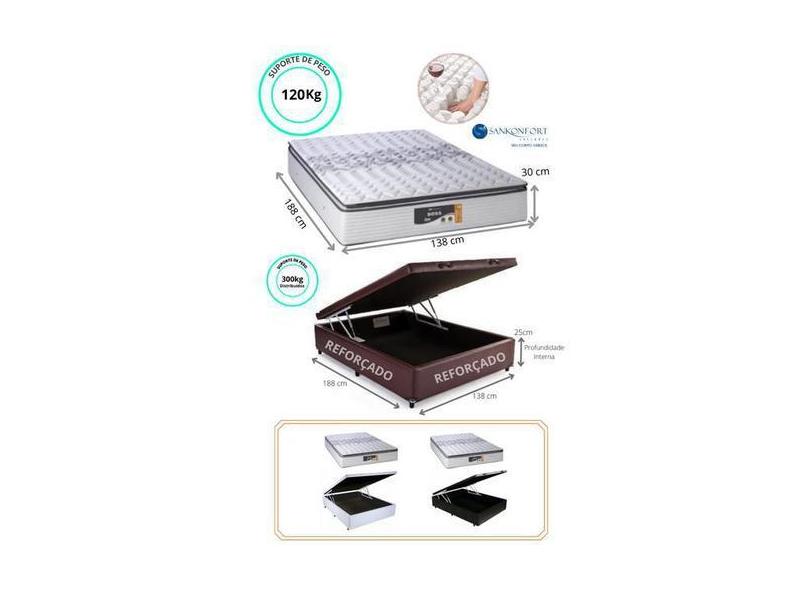Conjunto Cama Box Baú Casal + Colchão Sankonfort Doss Molas Ensacadas