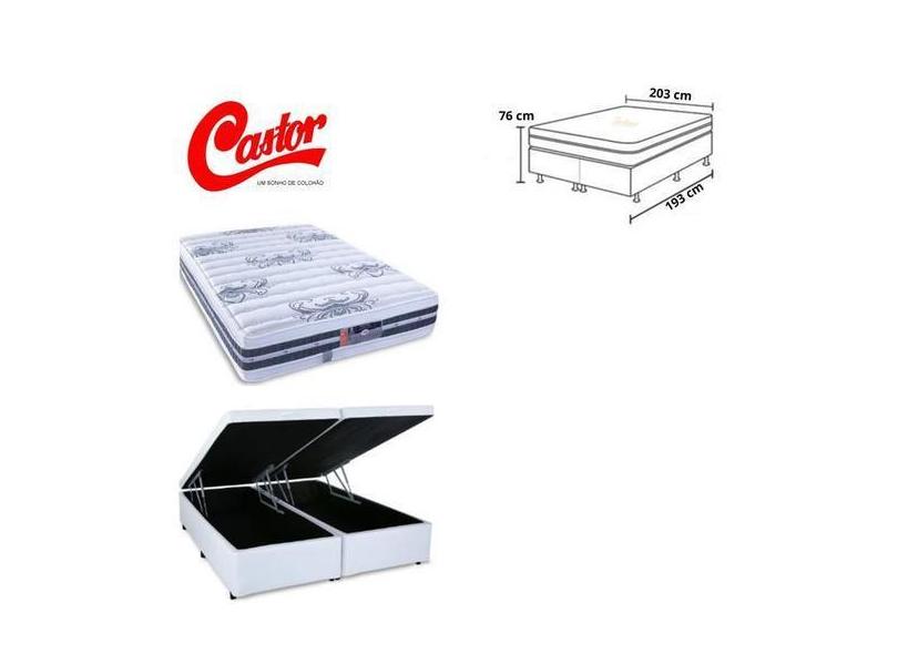 Conjunto Cama Box Baú Casal King + Colchão Castor Silver Star Tecnoped