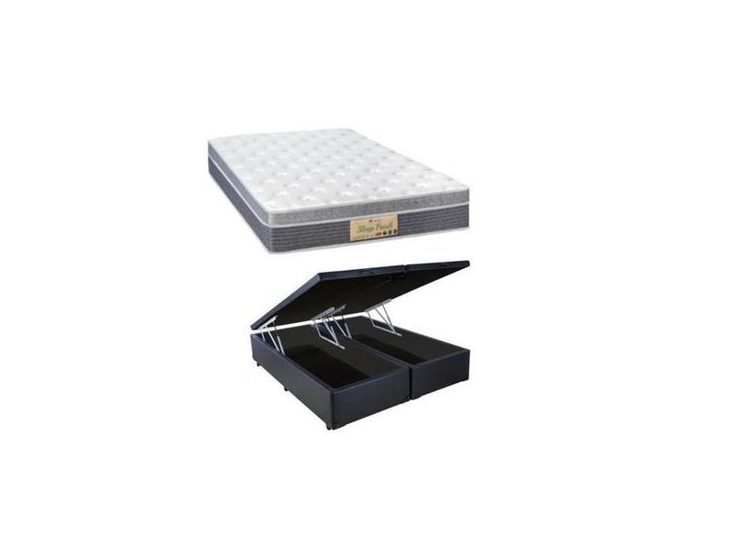Conjunto Cama Box Baú Casal Queen Bipartido + Colchão Sankonfort Sleep