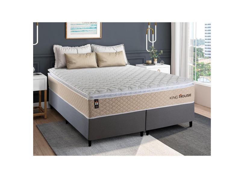 Conjunto Cama Box c/ Molas Ensacadas Alford Bege King 193x203x66