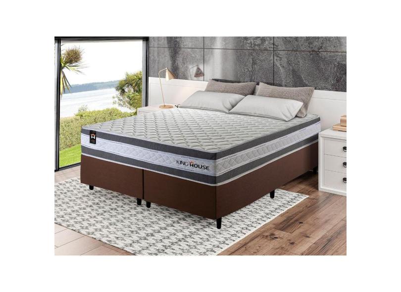Conjunto Cama Box c/ Molas Ensacadas Alpine Cinza King 193x203x65