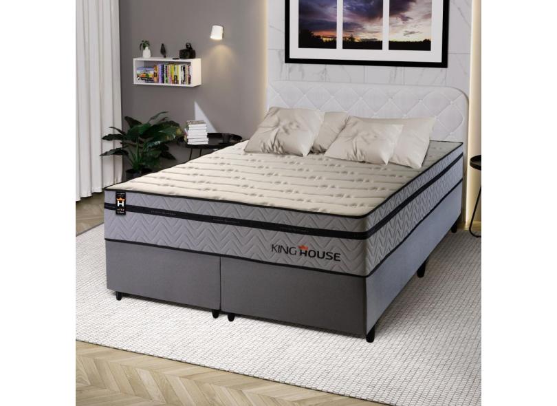 Conjunto Cama Box c/ Molas Ensacadas Preston Cinza King 193x203x71