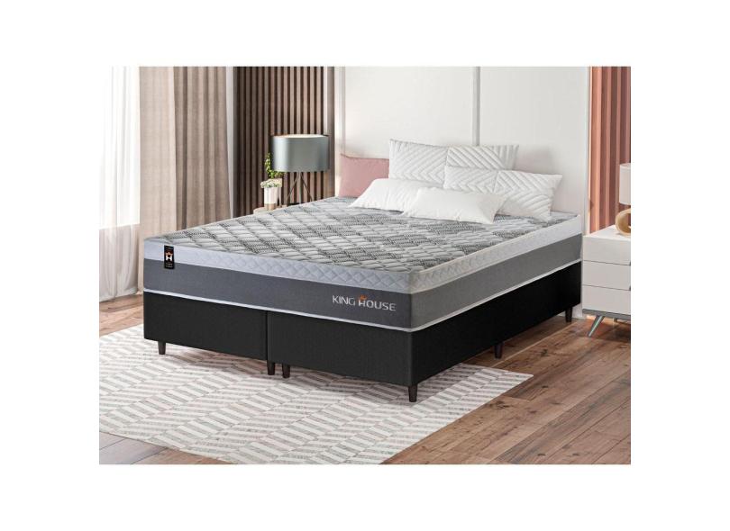Conjunto Cama Box c/ Molas Ensacadas Sheffield Cinza King 193x203x65