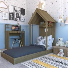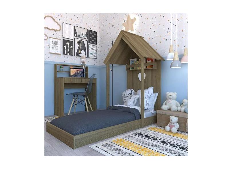Conjunto de Cama com Escrivaninha KitCubos Carvalho - Bramov