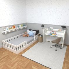 Conjunto Infantil De Cama Montessoriana E Escrivaninha Com Regulagem D