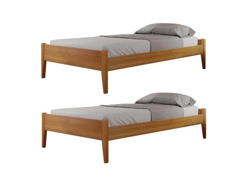 Conjunto para Quarto 2 Camas de Solteiro 90cm em Madeira Maciça Turca Slim Amêndoa Mel