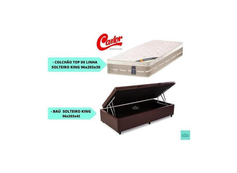 Conjunto Solteiro King C/ Colchão Castor Molas Premium + Cama Box Baú