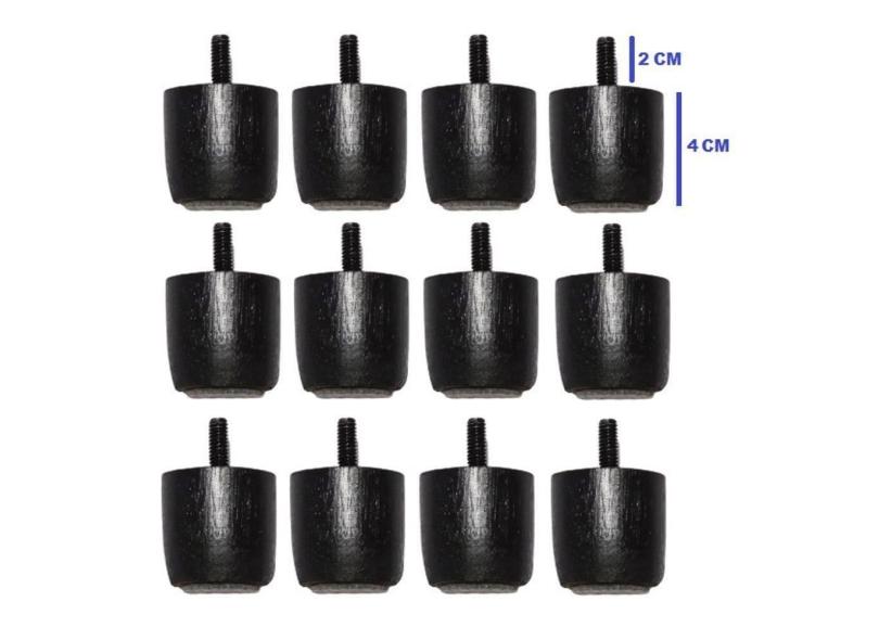 O menor preço encontrado no Brasil para Kit 12 Pés Para Cama Box Baú Queen Ou King Jr Preto Altura 4cm Madeira Maciça atualmente é R$ 38,49.