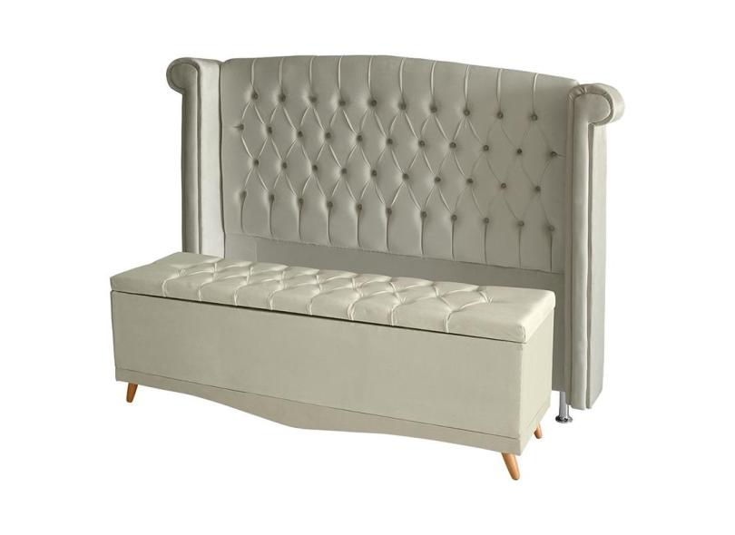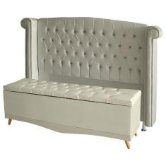 Kit Cabeceira De Cama Box e Calçadeira Baú Luxo King 195 cm Suede Porcelana Eli Móveis