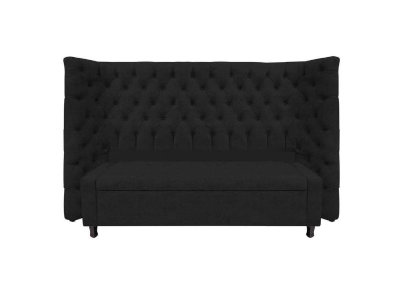 Kit Cabeceira e Calçadeira Baú Queen Everest P02 160cm Para Cama Box Corano Preto