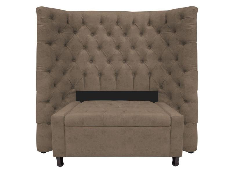 Kit Cabeceira e Calçadeira Baú Solteiro Everest P02 90cm Para Cama Box Suede Marrom