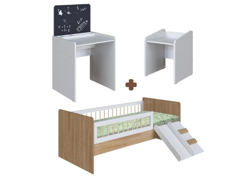 Kit Cama Montessoriana Com Banqueta E Mesa Com Quadro Infantil Aveiro Oak Branco Spencer Shop Jm
