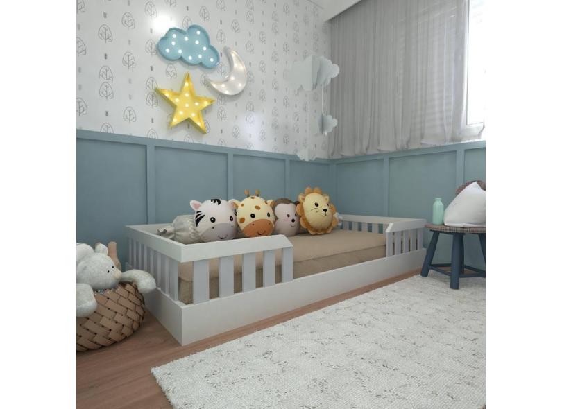 Kit com Cama Solteiro e Armário Baixo Montessoriano Yescasa Branco/Cinza Cristal