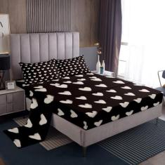 Lençóis de cama Erosebridal em tamanho real com coração branco e preto