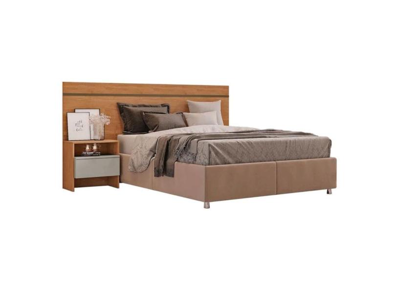 Painel Cama Box Madeirado - Prime 1 Mesa c/ 1 Gaveta Casal Freijo Cumaru Fendi - Novo Horizonte