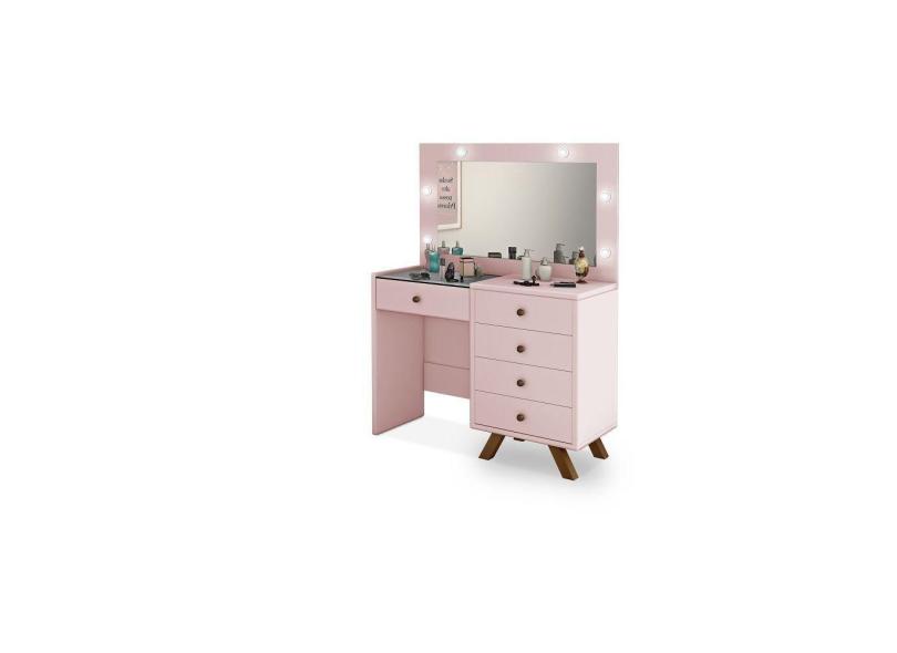 penteadeira camarim 5g mdf pes e puxador de madeira classic cor Rosa