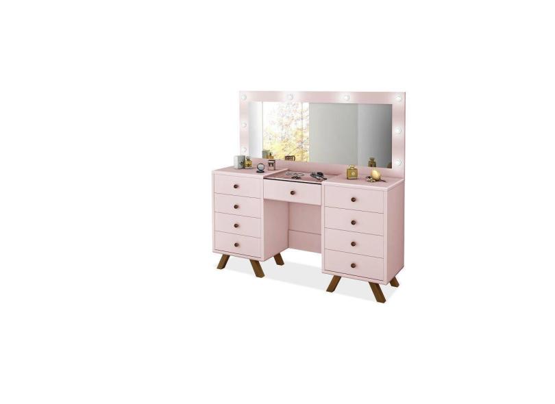 Penteadeira Camarim 9 Gavetas Rosa Adolescente e Adulto Led e Espelho