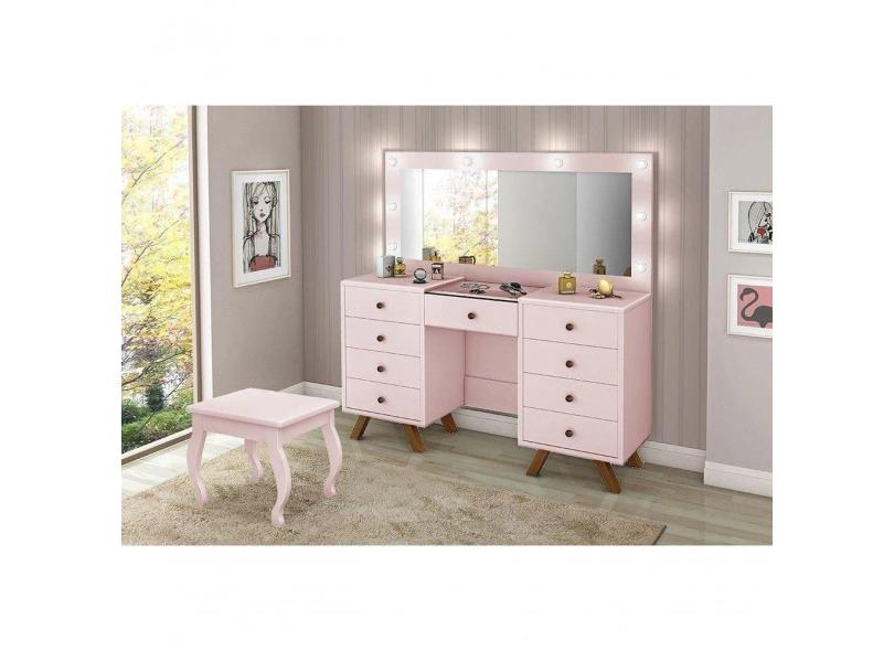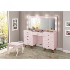 Penteadeira Camarim Com Espelho E Banqueta Mila Rosê