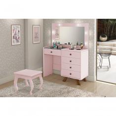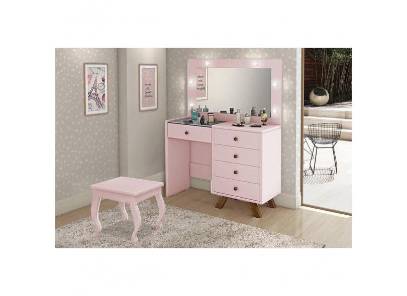 Penteadeira Camarim Com Espelho E Led Com Banqueta Luna Rosê - Luapa