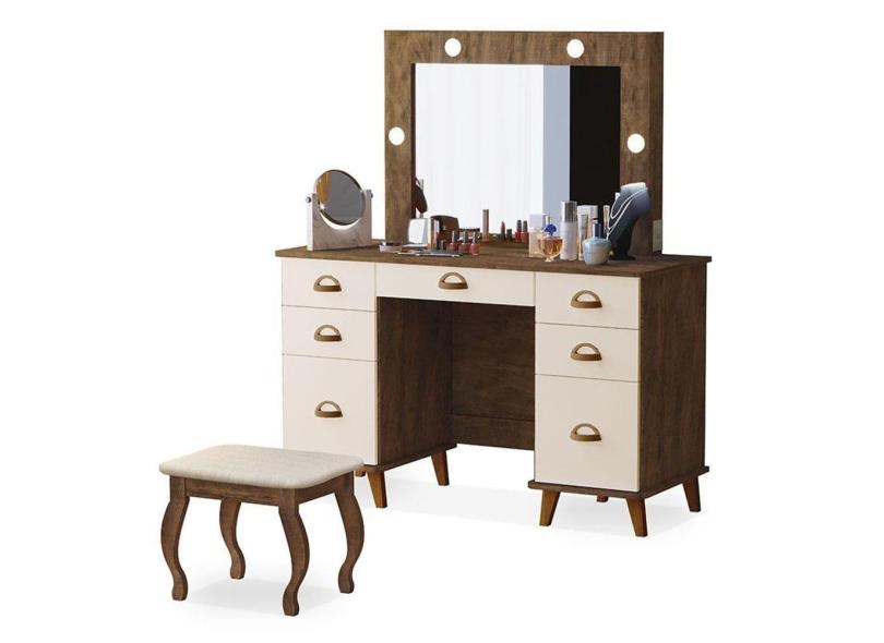 O menor preço encontrado no Brasil para Penteadeira Camarim New Seul com Banqueta Almofadada Malbec Off White - Luapa atualmente é R$ 1.197,40.