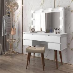 O menor preço encontrado no Brasil para Penteadeira Com 5 Gavetas E Camarim Fernanda Branco atualmente é R$ 1.466,95.
