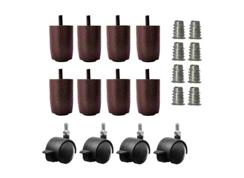Pés 6,5cm Marrom 8x4 Trava E Buchas Cama Box Queen King P63