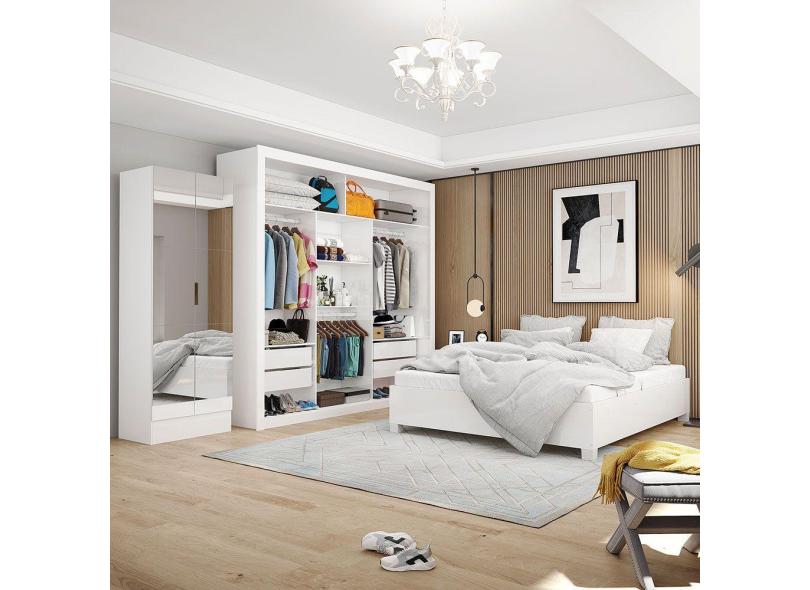 O menor preço encontrado no Brasil para Quarto Completo Casal Closet Clarice 4 Gavetas Sapateira 2 Portas Premium e Cama Carioca Móveis atualmente é R$ 1.215,61.