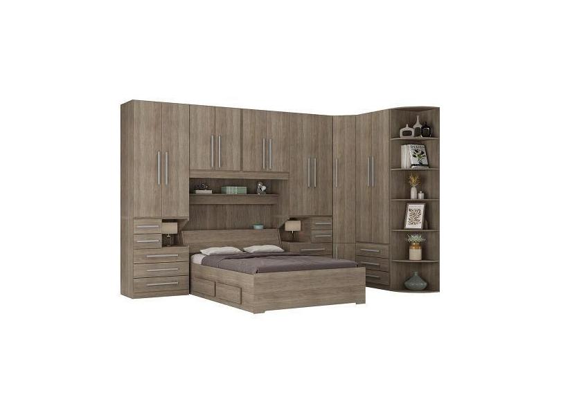 Quarto de Casal de Canto e com Cama Baú Queen-Size 1344 Castanho - Móv