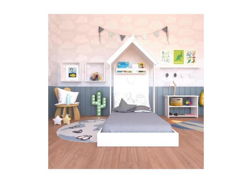 Quarto Infantil Cama Banqueta 2 Nicho e Prateleira Bramov Móveis Branc