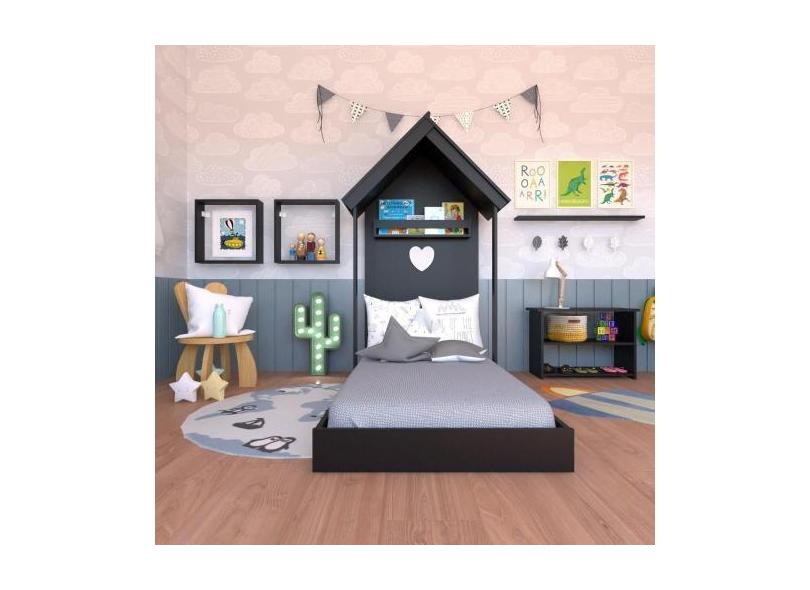 Quarto Infantil Cama Banqueta 2 Nicho e Prateleira Bramov Móveis Preto