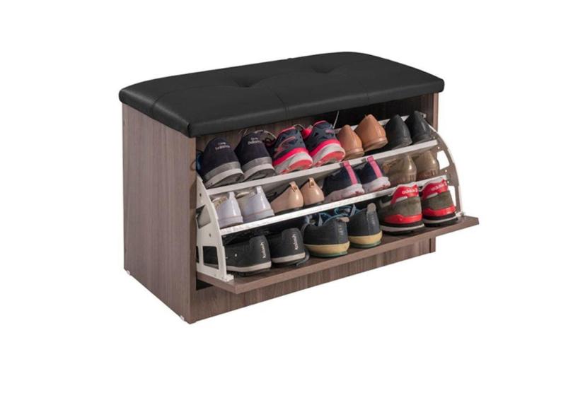 Sapateira Puff Bau Cama Versatile Premium Luxo Até 12 Pares Marrom - Estofado Preto