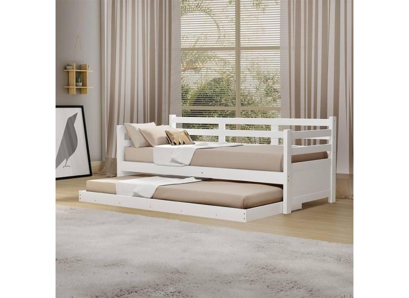 Sofá Cama Solteiro em Madeira Maciça Vintage + 2 Colchões Enjoy - Branco