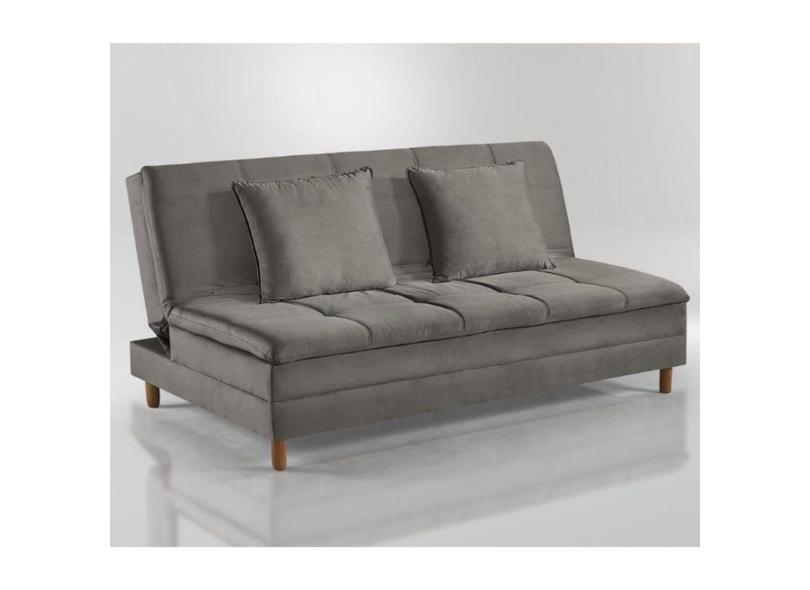 Sofá Cama Vegas 185cm Pé De Madeira Talento Móveis Prata
