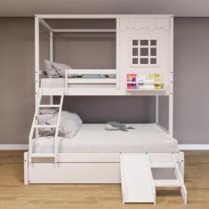 Treliche Casinha Reta Casal/ Solteiro Com Escorregador Madeira Maciça